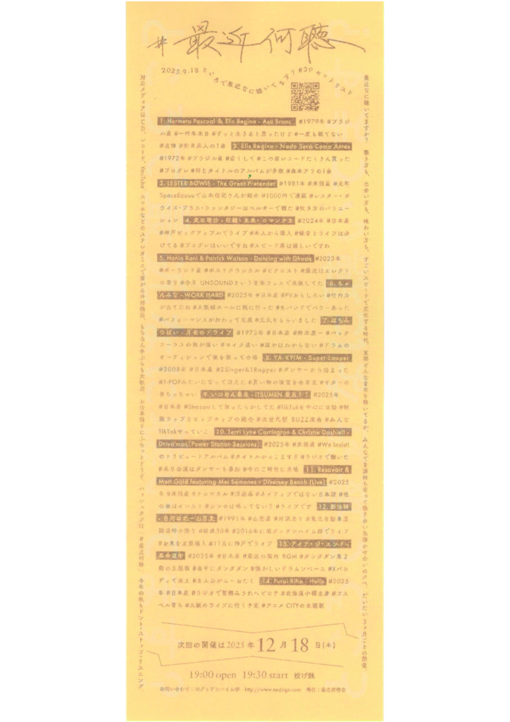 2025/9/18 ところで最近なに聴いてます? #39