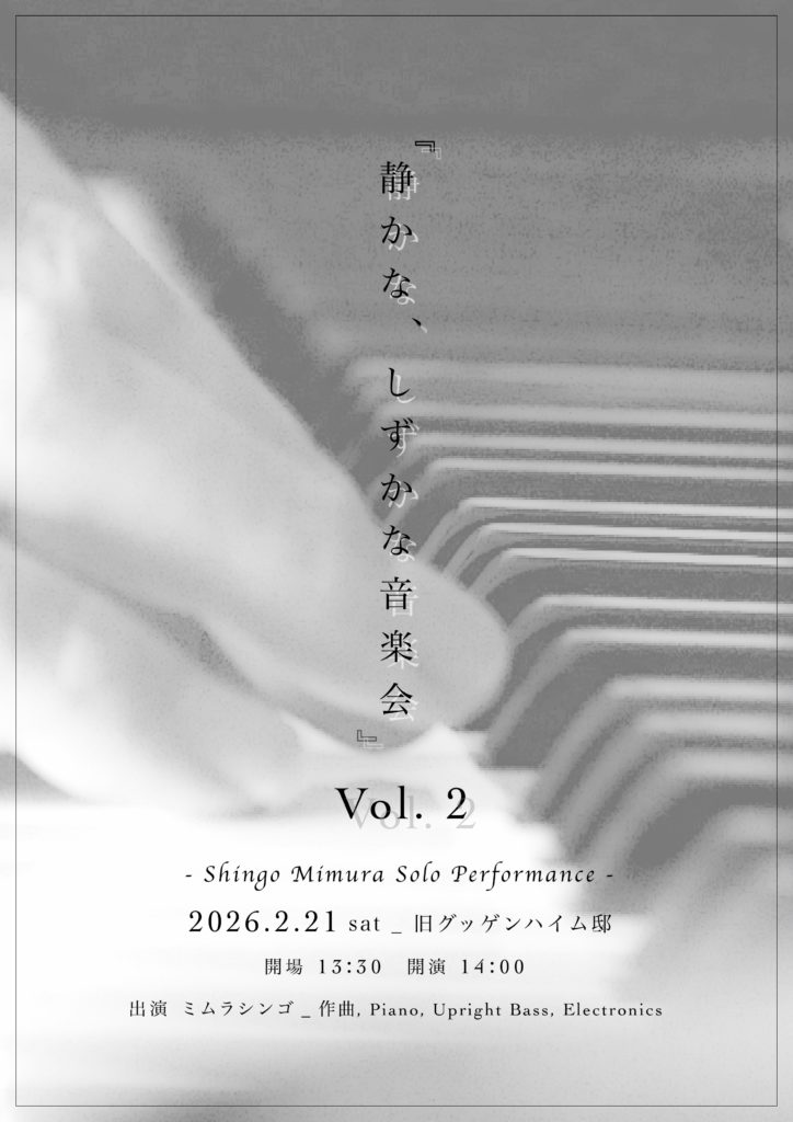 『静かな、しずかな音楽会』Vol. 2 – ミムラシンゴ Solo Performance –